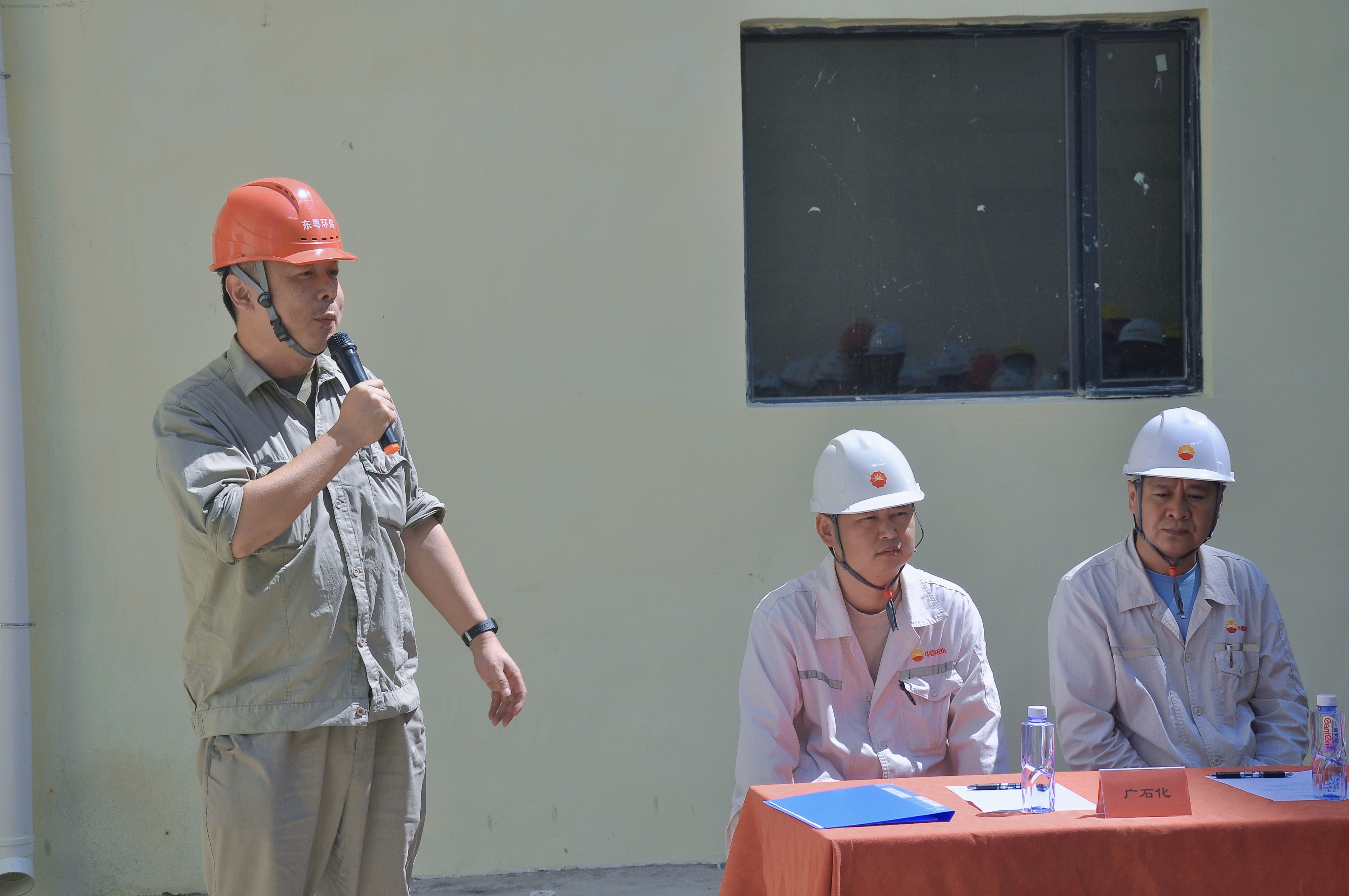 2022年9月15日上午十時許,在熱烈的掌聲中,廣東東粵環??萍加邢薰臼徒怪茪浠以C合利用項目前端裝置中交儀式在POX裝置區域隆重舉行。廣東石化工程管理部婁秀偉、趙兵團,中化四建項目經理袁清溪,廣州石化監理公司總監席戰峰以及東粵環??偨浝砝疃魅?、總工程師吳聿列席參加。