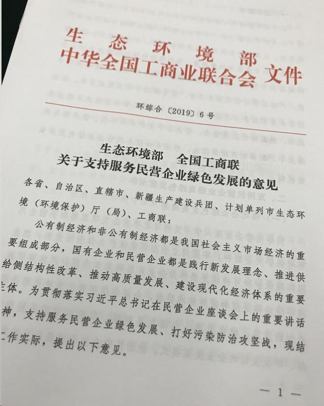 今天,生態環境部和全國工商聯簽署了“關于共同推進民營企業綠色發展 打好污染防治攻堅戰”的合作協議,聯合出臺《關于支持服務民營企業綠色發展的意見》,將通過健全市場準入機制、完善環境法規標準、規范環境執法行為、強化科技支持服務、完善環境經濟政策措施,支持民營企業提高綠色發展水平、營造公平競爭市場環境。