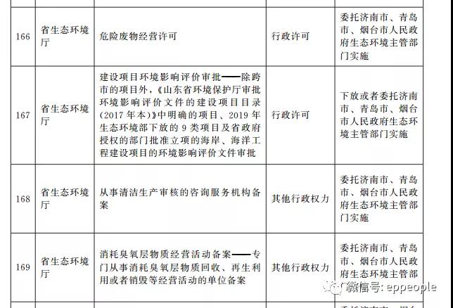 北極星大氣網訊:近日,山東省人民政府頒布《山東省人民政府關于調整實施部分省級行政權力事項的決定》,將環評審批、危廢許可等多項審批權下放,詳情如下: