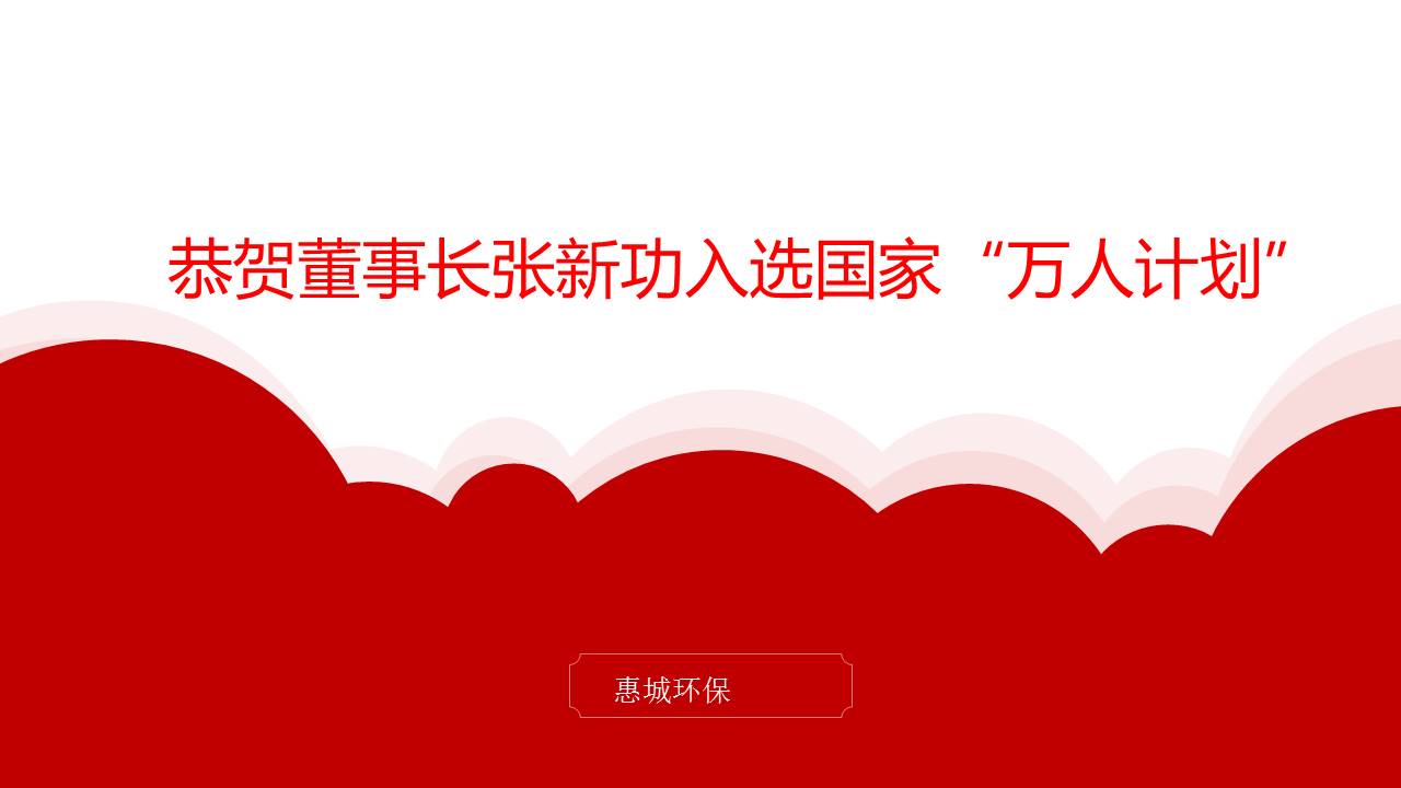 日前,中組部公示第二批國家“萬人計劃”領軍人才人選,青島惠城環保科技股份有限公司張新功董事長獲得“科技創業領軍人才”榮譽稱號,全國僅336人獲此殊榮。[ 查看更多 ]